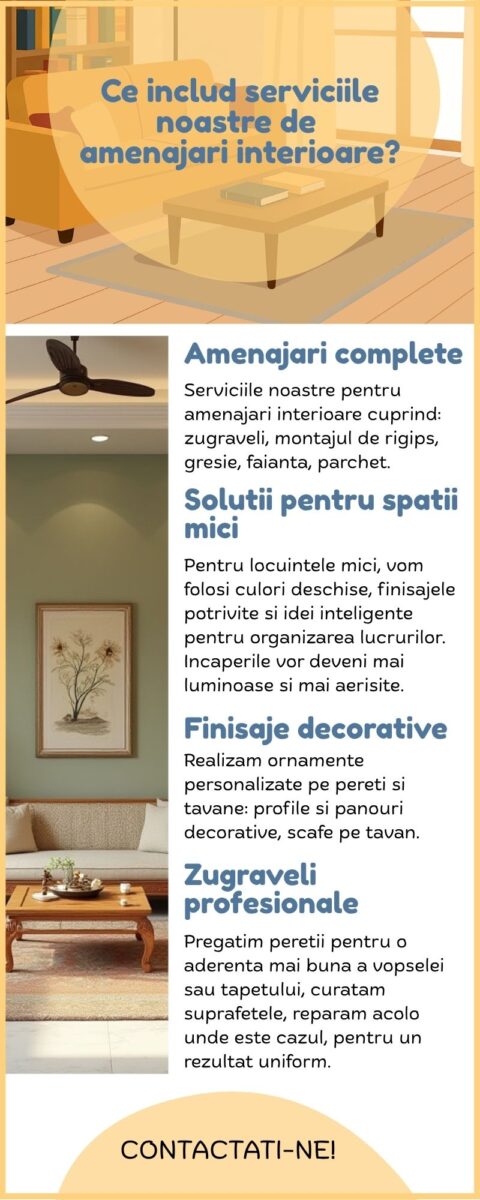 Pentru amenajarea interioara a apartamentelor, oferim o gama completa de servicii:
